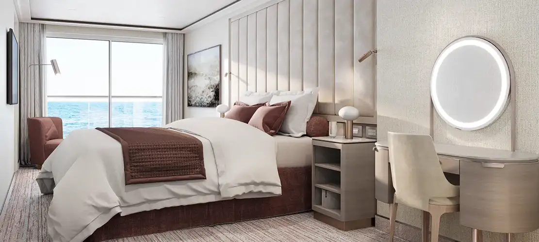 Desde la clásica cabina interior hasta la más elegante de la suites a bordo. Descubre la cabina más adecuada para ti a bordo de Silver Nova.
